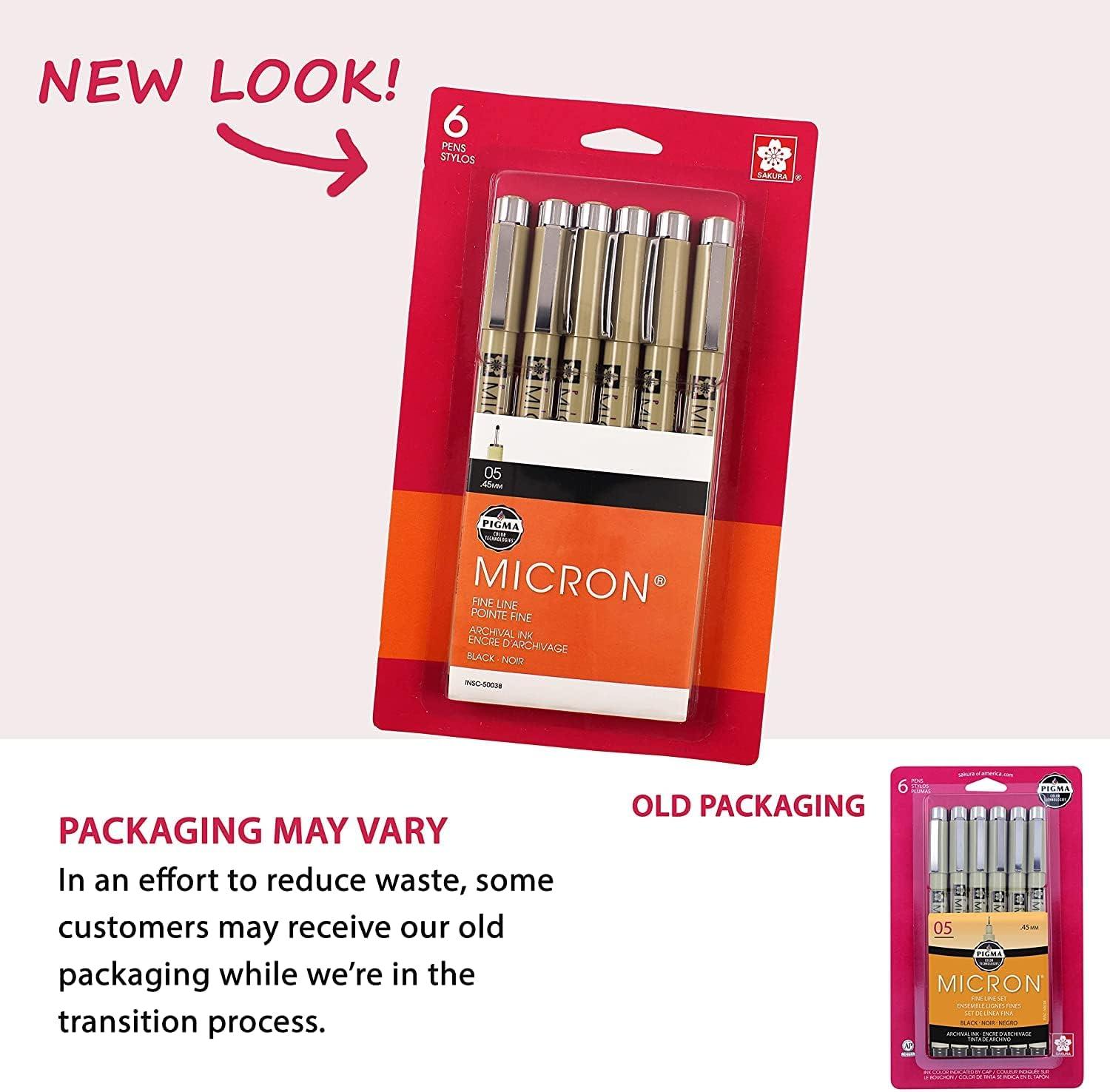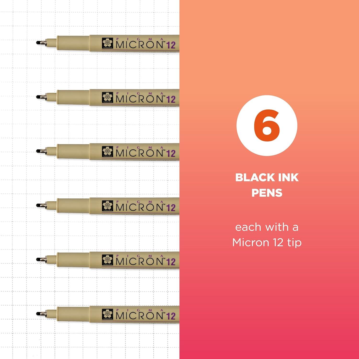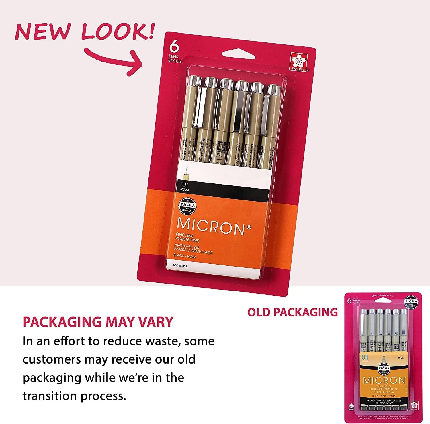 SAKURA Pigma Micron Fineliner Pens, 01 Tip Size, Archival Black Ink, 6 PK 50035(Black)